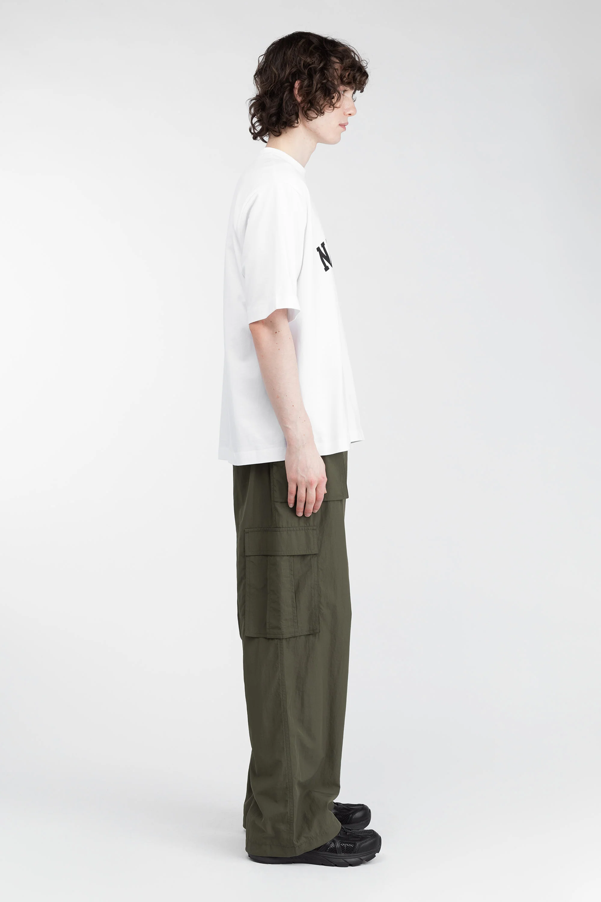 Relaxed fit. Crew neckline. Short sleeves. "New York" graphic text. Organic Cotton. 28" length based on size M.