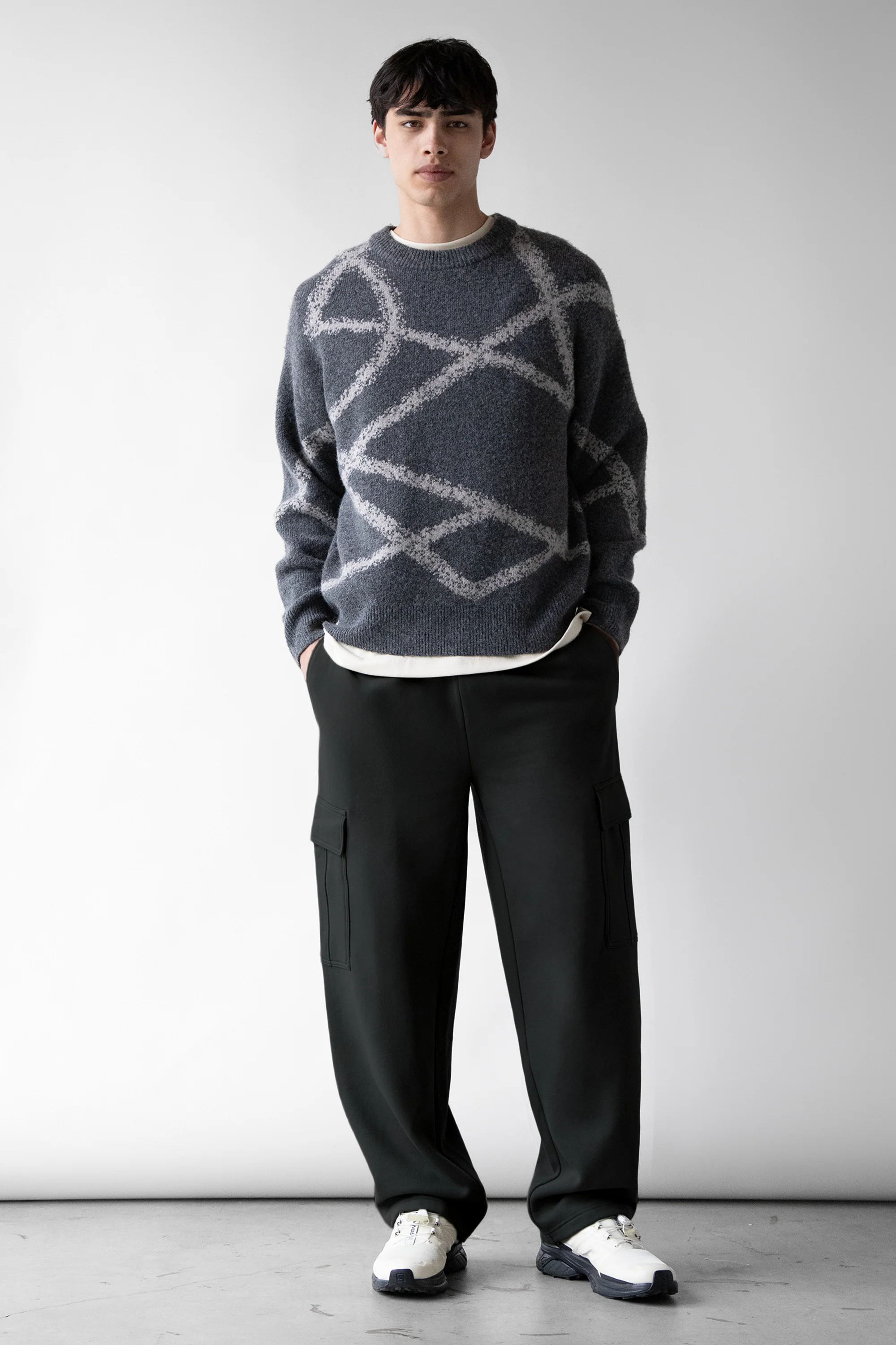 Oversized fit. Crew neckline. Ribbed trims. Dropped shoulders. Spray paint effect intarsia knit. 26.75" length based on size M.