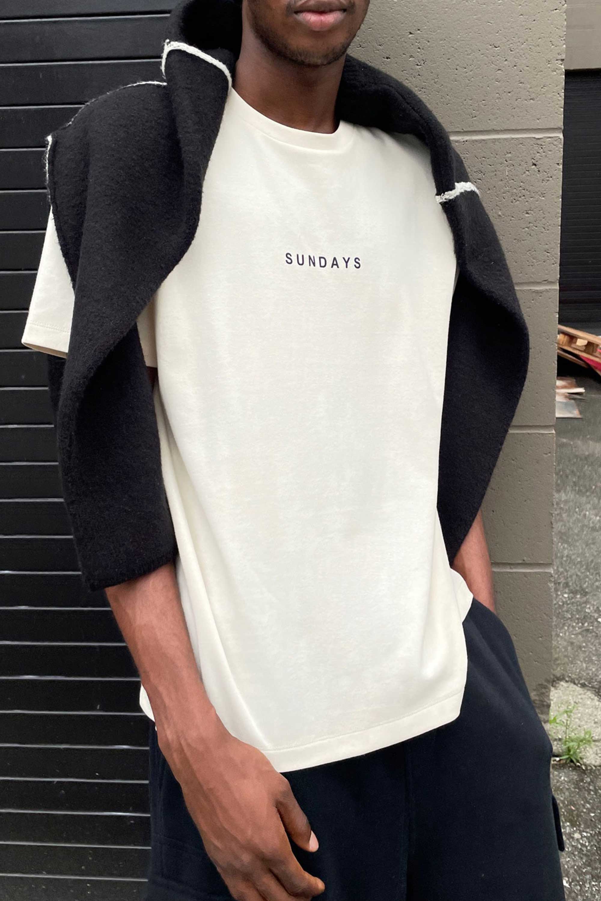 Relaxed fit. \"Sundays\" graphic. Crew neckline.