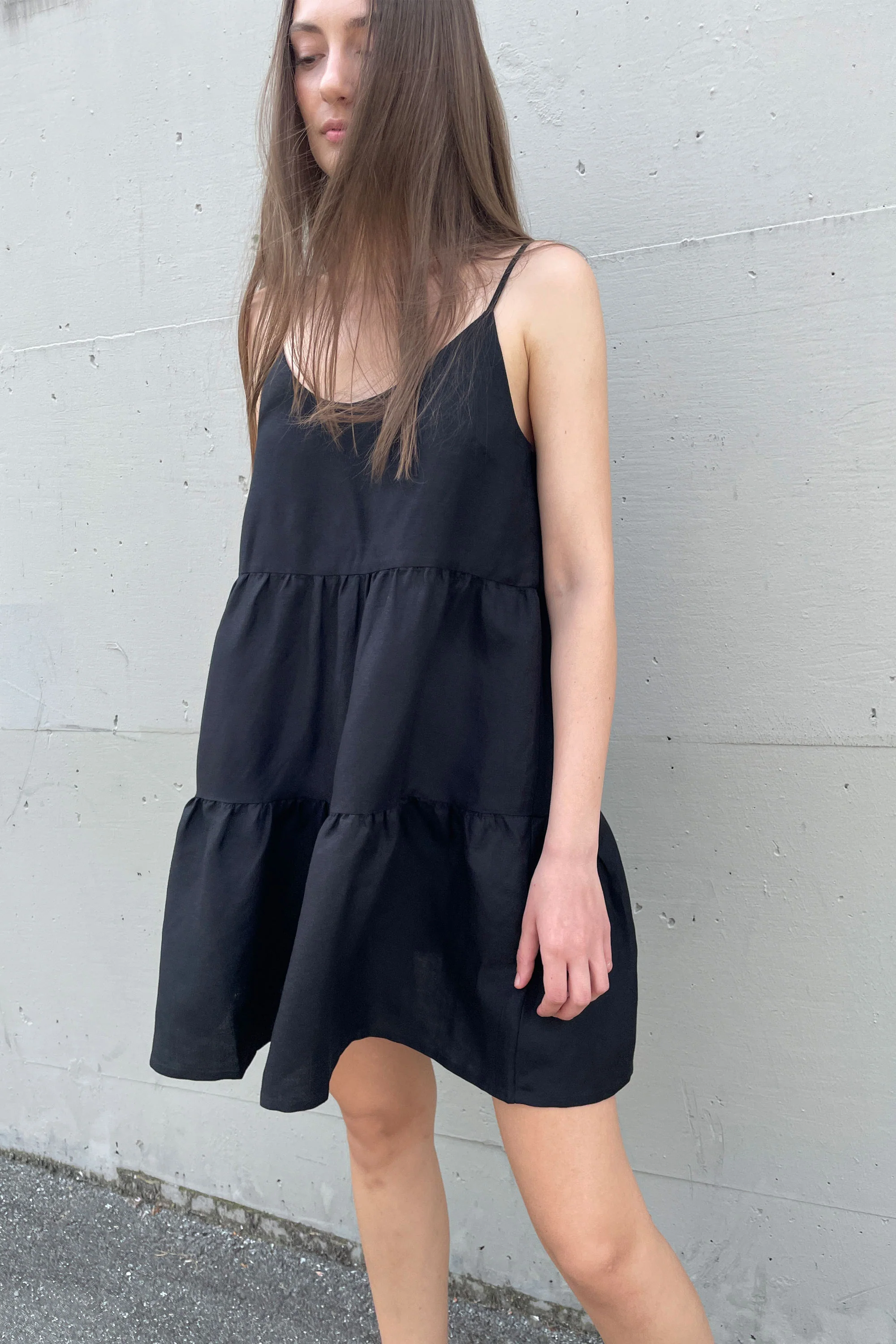 This tiered mini dress is a season must-have, it is made from a linen rayon blend in a relaxed silhouette. Wear yours from day to night with heels and a mini bag.