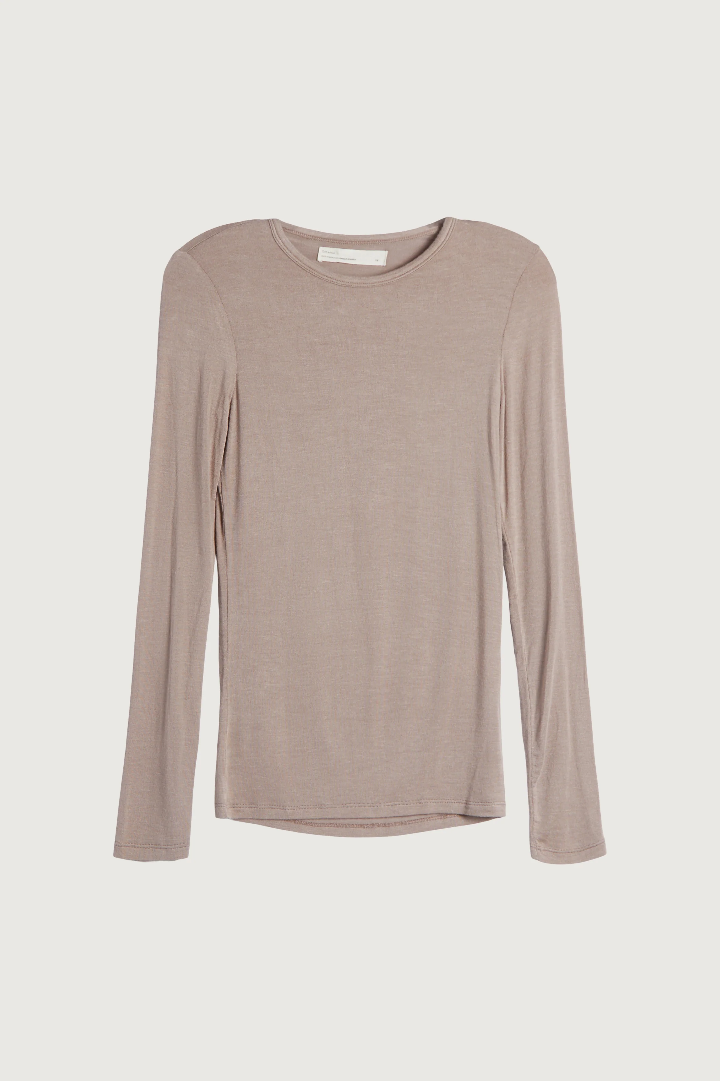 This basic crewneck long sleeve top has a slim, body-hugging fit and a soft brushed feel. A staple to own this season to layer under your outfits.